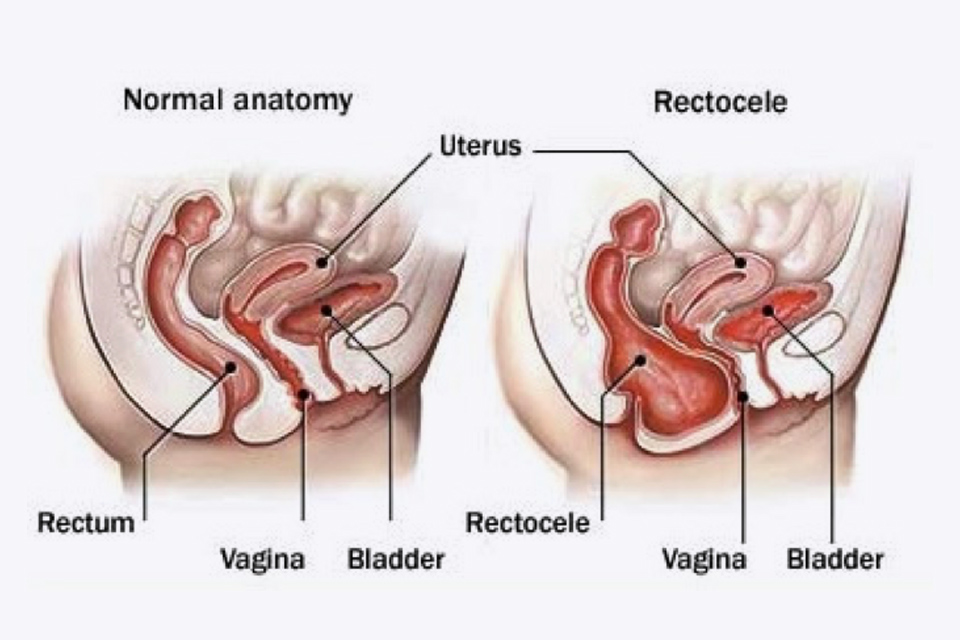 A posterior vaginal wall prolapse (rectocele) results in the bowel/rectum bulging forward into the back wall of the vagina causing difficulty emptying the bowel.